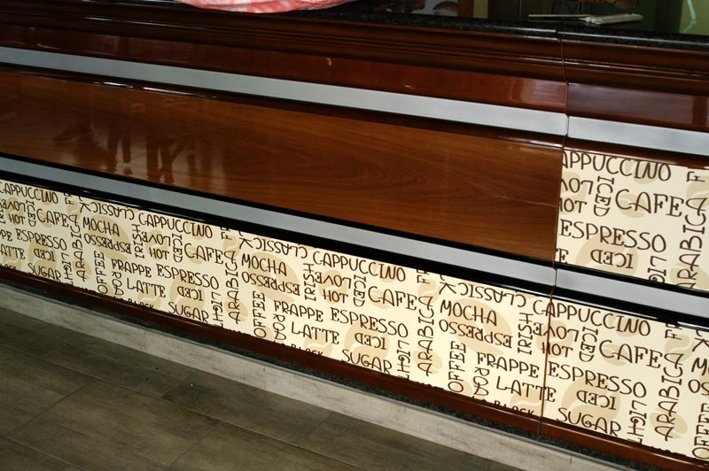 Le fotografie che vedete sono relative ad un lavoro di rivestimento banco bar (anche chiamato riqualificazione) in un locale che ha cambiato gestione.